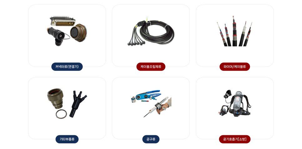 스위치류, 하네스 작업공구류, 공기호흡기(소방) 및 기자재류, 전기자동차용 커플러